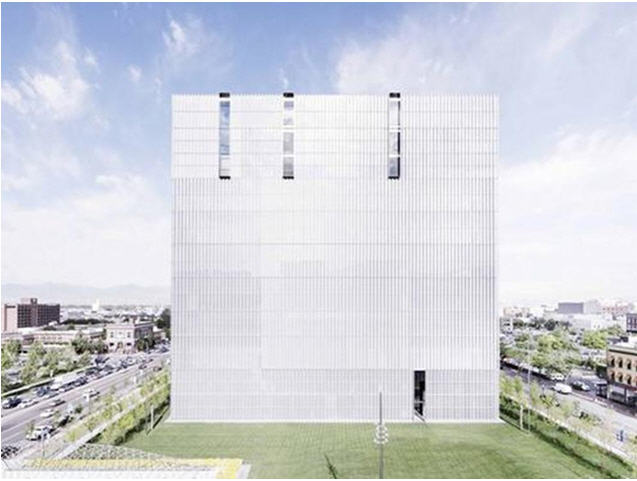 Tòa án thành phố Salt Lake có hình lập phương, biểu trưng cho công lý: Mạnh mẽ, biểu tượng, minh bạch và bình đẳng. (Thomas Phifer and Partners).