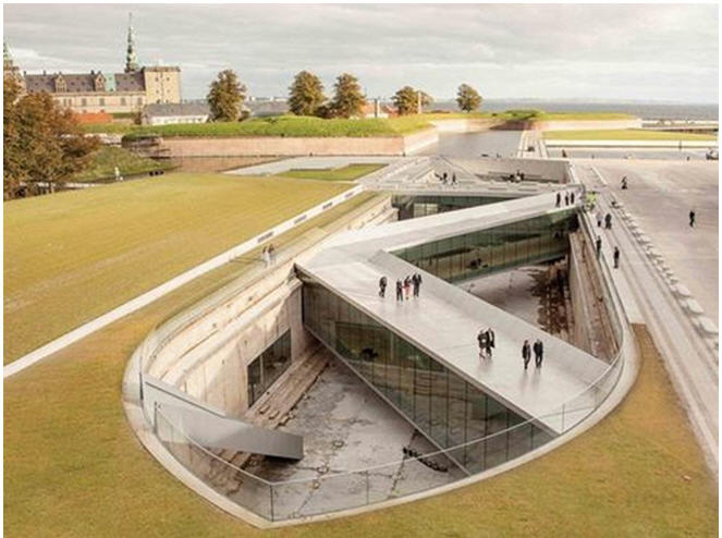 Bảo tàng Đại dương Quốc gia Đan Mạch vốn nằm bên trong lâu đài Kronberg tại Elsinore (Di tích thế giới được UNESCO công nhận), nhưng được tách ra để cải tạo nội thất. Bảo tàng này được chuyển đến khu đóng tàu bên cạnh, tạo thành thiết kế đa tầng với lối đi thoai thoải. (BIG | Bjarke Ingels Group).
