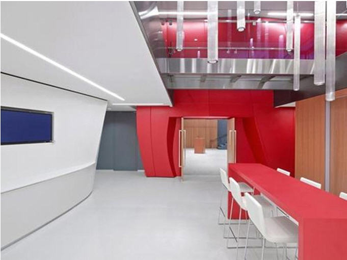 Trụ sở của Beats By Dre tại thành phố Culver, California có thiết kế đặc biệt ấm cúng, hấp dẫn và tạo môi trường tương tác giữa 650 nhân viên của các phòng ban khác nhau. Để làm được điều đó, tòa nhà được thiết kế đặc biệt với cửa sổ trên trần, không gian sáng sủa, thoáng mát, nội thất gỗ ấm cúng cùng những bức tường sơn xanh đỏ. (Bestor Architecture).