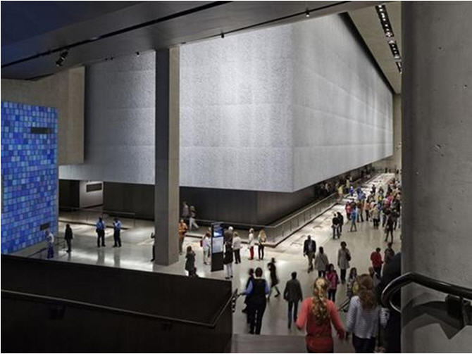 Bốn nguyên tắc thiết kế chủ đạo của nội thất bảo tàng tưởng niệm 11/9 gồm: Ký ức, tính xác thực, quy mô và cảm xúc. Được xây dựng trên nền của tòa tháp đôi, bảo tàng này gợi nhớ tới vụ khủng bố khủng khiếp xảy ra vào 11/9/2001. (Davis Brody Bond).
