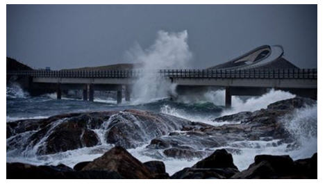 Con đường Đại Tây Dương (Na Uy): Dài 8,3 km, đây là con đường nối đảo và đô thị Averoy với Eide, nằm ở bờ Tây của Na Uy, khánh thành vào năm 1989. Con đường gồm 8 cây cầu nhỏ bắc qua 8 hòn đảo, các cây cầu đều được thiết kế với dáng cong độc đáo, có khả năng chịu được tác động của bão. Đây được coi là nơi đẹp nhất cho những lái xe đường dài đồng thời cũng là địa điểm lý tưởng cho những nhà quay phim quảng cáo xe hơi trên thế giới. Đặc biệt, phong cảnh của hai bên cầu thật sự hấp dẫn lòng người với đại dương bao la và đời sống sinh vật phong phú dưới đó.