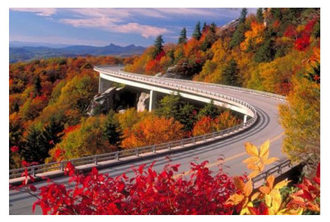 Blue Ridge Parkway (Appalachia): Đây là một con đường nổi tiếng về cảnh đẹp tự nhiên và được cho là một trong những con đường đẹp nhất nước Mỹ. Tuyến đường thơ mộng này trải dài 755 km từ bang Virginia xuống đến tận công viên quốc gia thuộc tiểu bang North Carolina. Mặc dù không được coi là công viên quốc gia nhưng chính những phong cảnh ngoạn mục của núi cao, sông hồ, những hang động đá vôi cũng khiến Blue Ridge được xếp vào những địa điểm hấp dẫn nhất trong hệ thống công viên quốc gia của Mỹ.