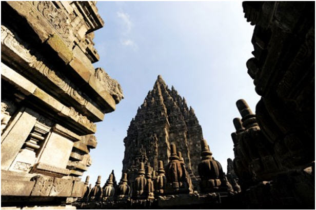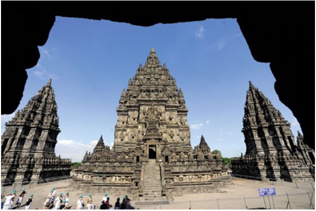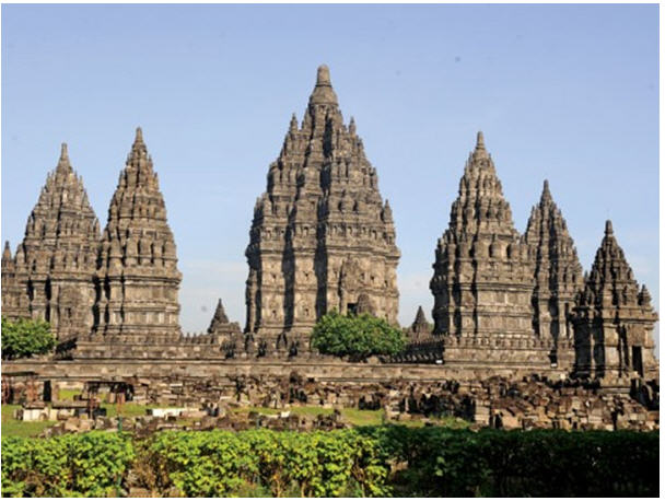Vẻ đẹp ngàn năm của Prambanan cho đến nay vẫn là một biểu tượng rõ nét nhất trong lối xây dựng đền đài Hindu giáo ở Java.Từ trung tâm của thành phố Yogjakarta – thành phố ở miền trung Java – chỉ mất chưa đầy nửa giờ xe buýt, tôi đã đến được vùng đất xưa kia từng là nơi phát triển nghệ thuật đỉnh cao của Hindu giáo ở giai đoạn từ thế kỷ 6 đến thế kỷ 10. Với rất nhiều các đền tháp cổ còn sót lại, các cuộc khai quật khảo cổ đã đưa ra những minh chứng về một thời kỳ vàng son của Hindu giáo ở vùng đất này. Trong đó, nổi bật nhất là ngôi đền Prambanan, với 240 toà tháp lớn nhỏ, là một kiệt tác về kiến trúc, điêu khắc, được xây dựng vào khoảng năm 856, thờ ba vị thần cao cả nhất của Hindu giáo là Shiva (đấng huỷ diệt), Vishnu (đấng bảo hộ) và Brahma (đấng tạo hoá).
