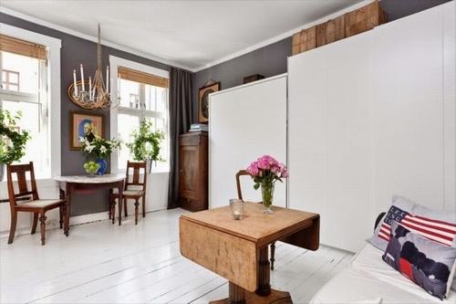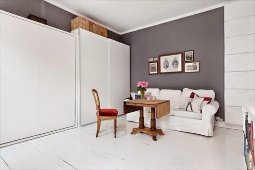 Phòng khách kết hợp với phòng ngủ là giải pháp thông minh trong căn hộ này