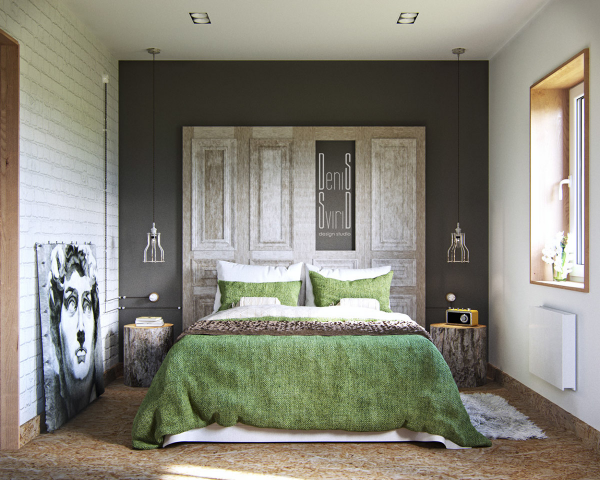 Điểm nhấn trong những gian phòng này là việc lựa chọn chất liệu gỗ tự nhiên và thiết kế độc đáo. Tấm ván đầu giường có dáng cong như một tán cây phủ. Những tác phẩm nghệ thuật tuyệt đẹp treo trên tường xung quanh giường và phòng ngủ, phản ánh những giấc mơ của chủ nhân căn phòng.