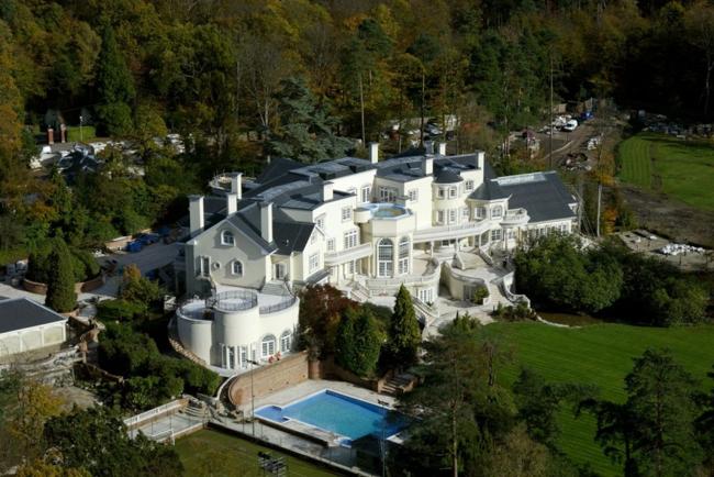 Updown Court, London, Anh có 24 phòng ngủ, hệ thống điều khiển nhiệt độ ánh sáng, 5 bể bơi, 1 hồ nước, phòng chiếu phim, nhiều phòng khiêu vũ, phòng chơi Bowling, bãi đáp máy bay trực thăng, gara đủ chỗ cho 8 chiếc limousine, lối đi lát đá cẩm thạch. Chủ nhân trước của biệt thự xa hoa này là doanh nhân Ấn Độ Leslie Allen nhưng ông này đã rao bán và hiện nay vẫn chưa rõ ai là người mua Updown Court