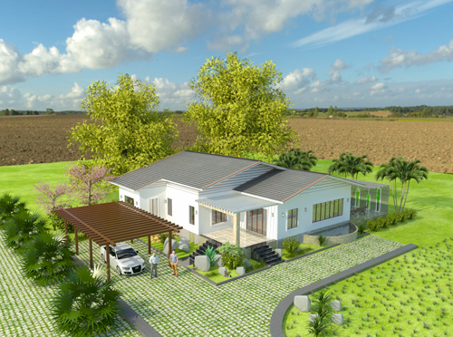 Nhà tôi có mảnh đất 2.000m2 ở Thạch Thất (Hà Nội). Tôi muốn làm nhà một tầng đơn giản, tiết kiệm và thông thoáng. Nhà cần có phòng khách, bếp ăn, 3 phòng ngủ cho ông bà, vợ chồng tôi và 2 con trai. Tôi thích có sảnh thật rộng hoặc hàng hiên bao quanh. Tôi dự kiến kinh phí 800 triệu đồng có đủ không?