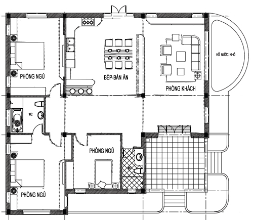Với nhu cầu các phòng như trên, gia đình chỉ cần xây dựng nhà một tầng trên diện tích 160 m2. Ngoài phòng khách, bếp ăn thông thoáng, sảnh lớn, các phòng ngủ đều có diện tích tầm 18-20 m2. Trong đó có một phòng ngủ có WC riêng, một nhà vệ sinh chung cho cả nhà.