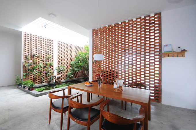 Vật liệu thô như gạch mộc, nền xi măng được sử dụng tối đa làm cho công trình càng gần hơn với thiên nhiên.