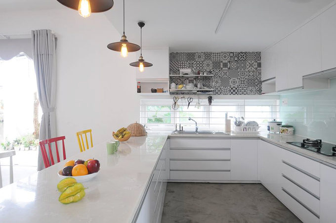 Riêng khu vực bếp nấu được đầu tư các trang thiết bị hiện đại, giúp gia chủ có thể chuẩn bị những bữa cơm nhanh chóng, tiện lợi.