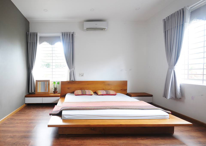 Mặt bằng rộng 250 m2 có thể bố trí được 4 phòng ngủ. Trong khi đó, gia đình chỉ có 4 người (2 vợ chồng, 2 con nhỏ đang ngủ chung). Bởi vậy, kiến trúc sư đưa ra ý tưởng chỉ làm nhà một tầng là đủ cho nhu cầu dài hạn.