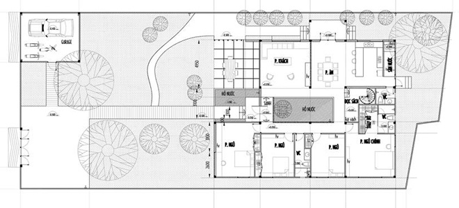 KTS Nguyễn Hữu Công Khanh (K+ Architects) còn đưa thêm những mảng hồ nước, cây xanh vào trong nhà, biến không gian này trở thành trung tâm kết nối mọi phòng.