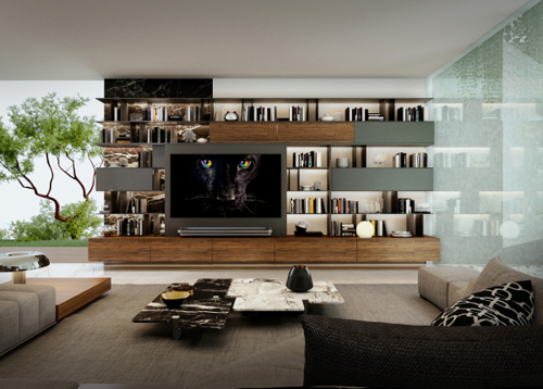 Là người am tường và ham học, nhu cầu có một tủ sách trong nhà của gia chủ là điều không thể thiếu. Theo đó, đội ngũ thiết kế đã quyết định tạo ra một không gian vừa là tủ sách, vừa kết hợp làm không gian trưng bày mà ở đó TV được treo ở vị trí trang trọng.