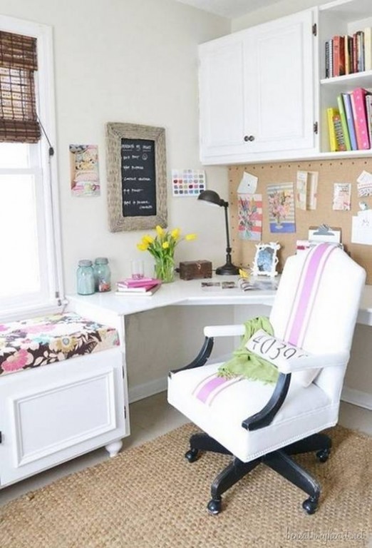 Phòng làm việc tại nhà phong cách hơn với bàn làm việc trong góc